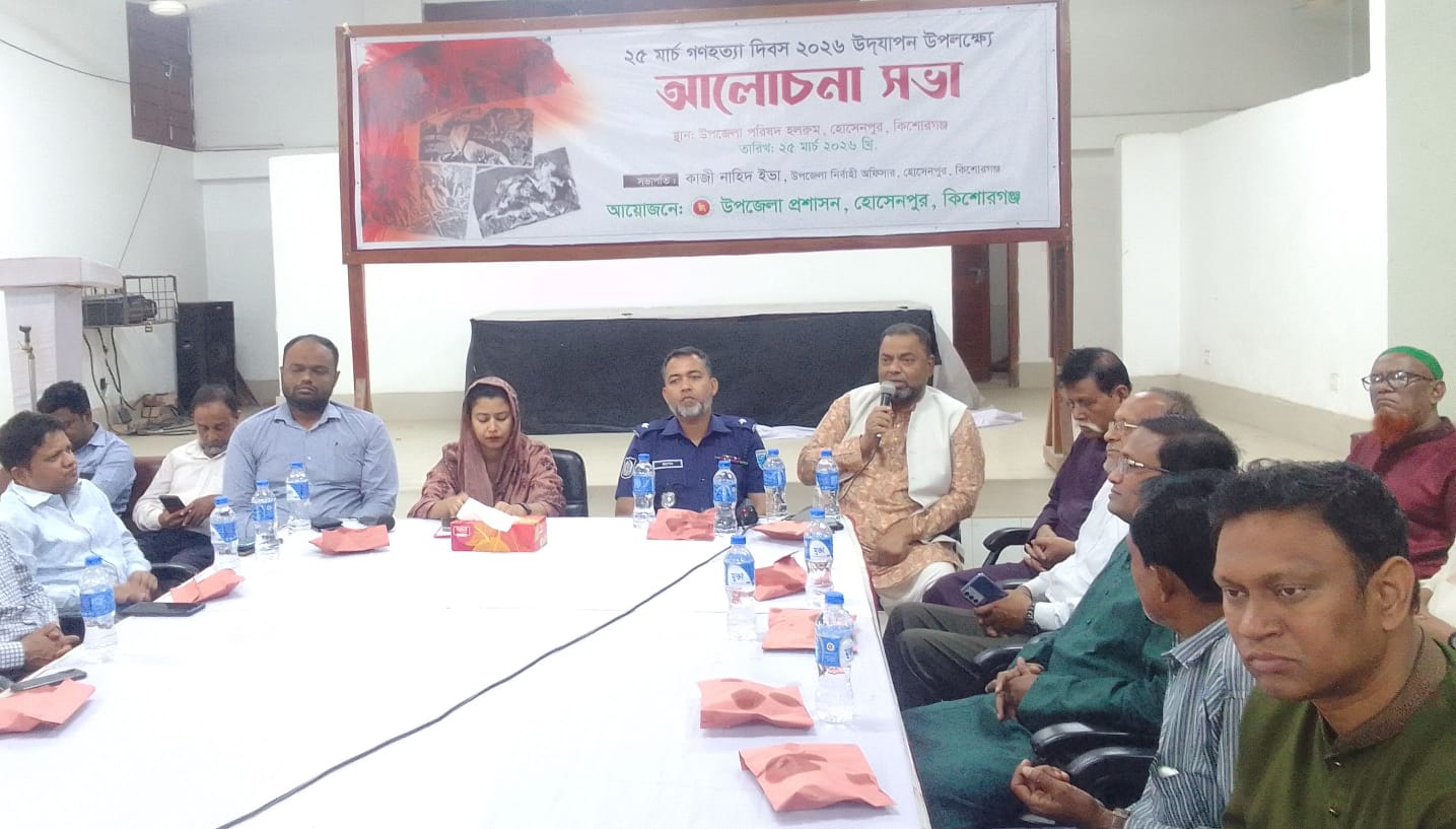 ২৫ মার্চ গণহত্যা দিবস উপলক্ষে কিশোরগঞ্জের হোসেনপুরে আলোচনা সভা অনুষ্ঠিত হয়েছে।