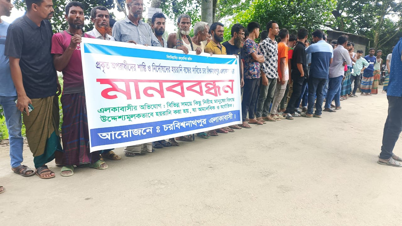 চরবিশনাথপুরে নিরীহ মানুষদের হয়রানির প্রতিবাদে মানববন্ধন